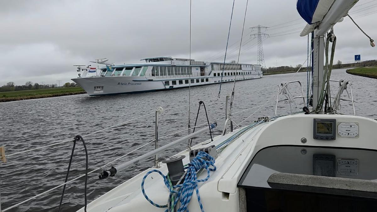 Kurz hinter Sneek kam mir wieder ein Kreuzfahrtschiff entgegen. Und ja: es war wieder die “Rheinprinzessin” - leider erinnerte sich der Kapitän nicht an unsere lange und tiefe Freundschaft und ignorierte mich…