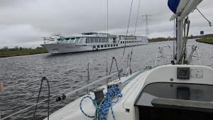 Aber eine alte Bekannte treffe ich doch: als wir vor zwei Jahren hier am Kanal lagen, kam ein Flusskreuzfahrtschiff an, gerade als wir aus dem Niedergang kamen. Der Kapitän grüßte uns freundlich, was wir erwiederten (und wir fanden es ziemlich lustig, dass er uns wie Kollegen behandelte :-) )
