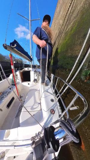 Und so hatte ich Glück und konnte ganz alleine in der riesigen Schleuse 1,5m zum Meer hinunter fahren. Nach der Schleuse noch kurz nach backbord abbiegen und ich war um 18:27, 3 Minuten vor dem Zeitplan fest und musste zugeben: die ganzen Sorgen waren unnötig :-)!